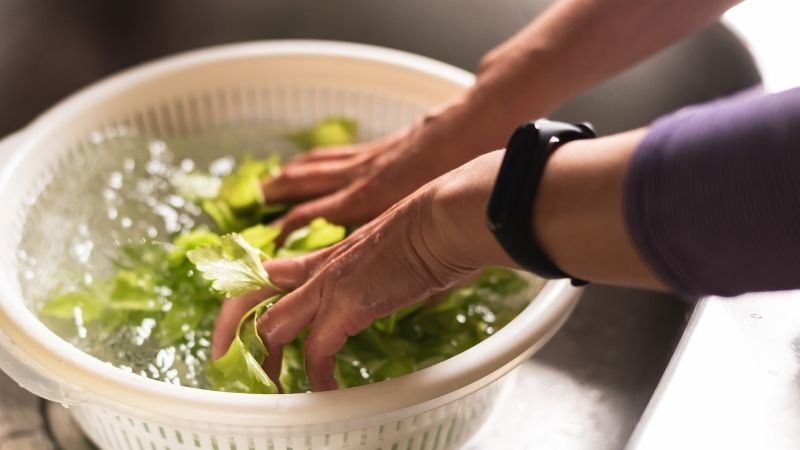 Bạn có thể dùng một ít bột muối nở và đem đi hòa tan chúng với nước, sau đó sử dụng dung dịch này để ngâm trái cây, rau củ từ 15 - 20 phút. Việc này không chỉ giúp cho rau củ quả được tươi, sạch và đặc biệt là khử bớt dư lượng thuốc trừ sâu có trong các thực phẩm này.