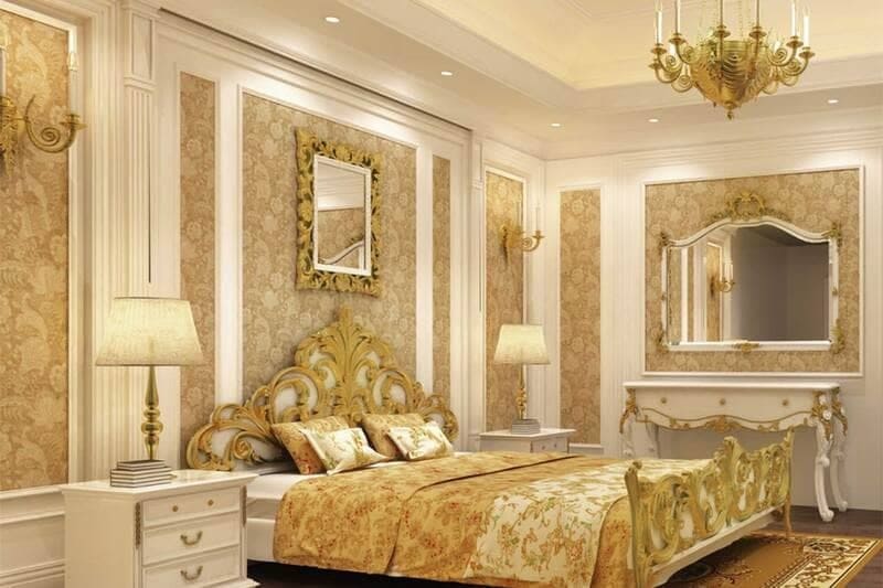 - Nội thất sử dụng chất liệu cao cấp như nhung, da, đá granite,... Và trang trí thêm các chi tiết như đèn chùm pha lê, tranh nghệ thuật hoặc gương lớn để tăng tính thu hút.