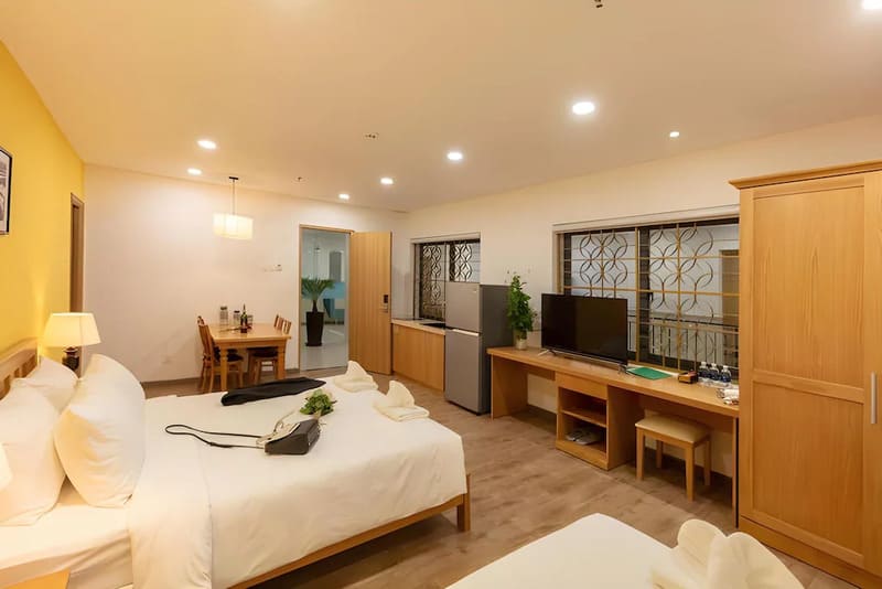 Khách sạn 3 sao này cung cấp bếp nấu ăn, dịch vụ giặt là, bãi đỗ xe miễn phí, wifi mạnh, bồn tắm,... Thời gian check-in nhận phòng là 14h và khách hoàn toàn có thể liên hệ cho nhân viên tại Khách sạn giá rẻ gần Bệnh viện Nhi Đồng 2 này để được hỗ trợ check-in sớm. Hotline đặt phòng tại: 0705 353 973.