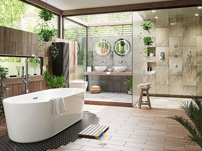 2. Phòng tắm phong cách hòa mình cùng thiên nhiên