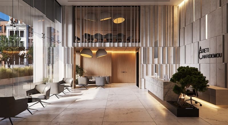 Thiết kế đại sảnh khách sạn theo style hiện đại tối giản