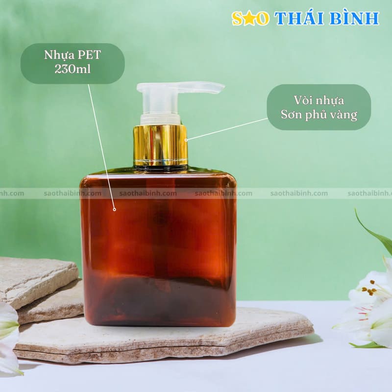 Bình nhựa PET 230ml + vòi phủ vàng siêu tiết kiệm