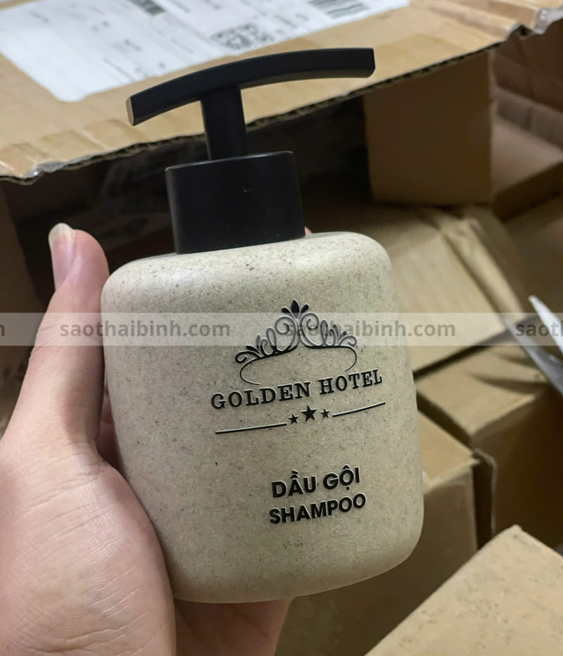 Bình nhựa resin dáng tròn in logo Golden Hotel