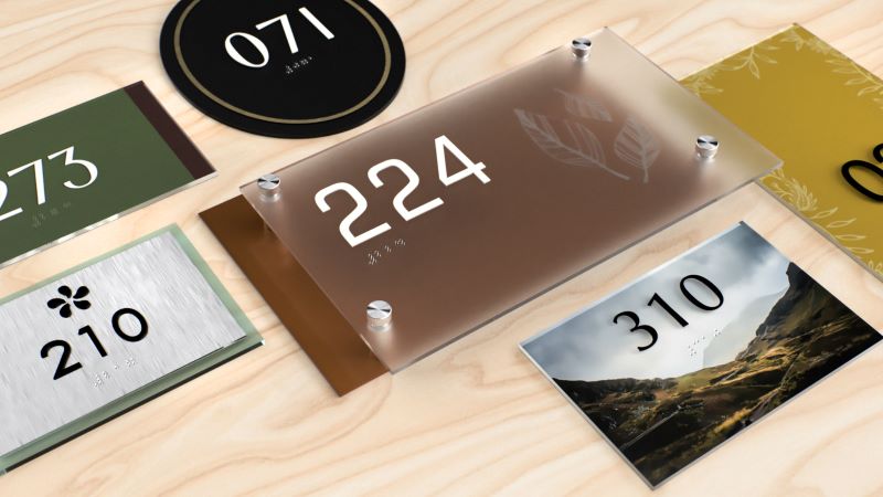Biển số phòng nhà nghỉ/ số phòng khách sạn được xem như một loại biển chỉ dẫn chiếm số lượng lớn nhất trong một đơn vị lưu trú. Những biển số sẽ giúp cho khách hàng dễ dàng tìm kiếm được phòng mà mình đã thuê. Đặc biệt, biển số phòng sẽ giúp cho người quản lý có thể kiểm soát được số phòng đang đó và tình trạng hoạt động của phòng.