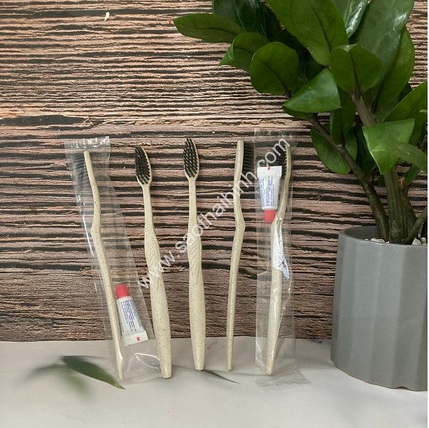 Ở Đồ dùng, thiết bị khách sạn Sao Thái Bình, những mẫu bàn chải thân thiện với môi trường được làm từ 3 nguyên liệu chính đó là lúa mạch, bột rơm và tre.