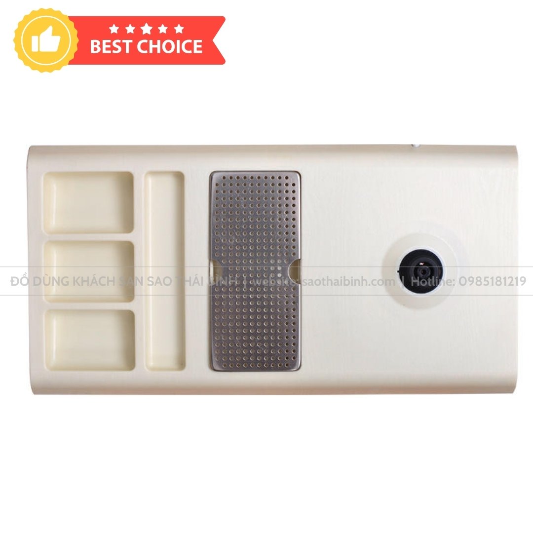 Khay đựng: Làm từ chất liệu melamine cao cấp, khay được thiết kế chia 3 ngăn riêng biệt, giúp sắp xếp ấm đun và cốc uống gọn gàng, tiện dụng trong không gian hẹp.