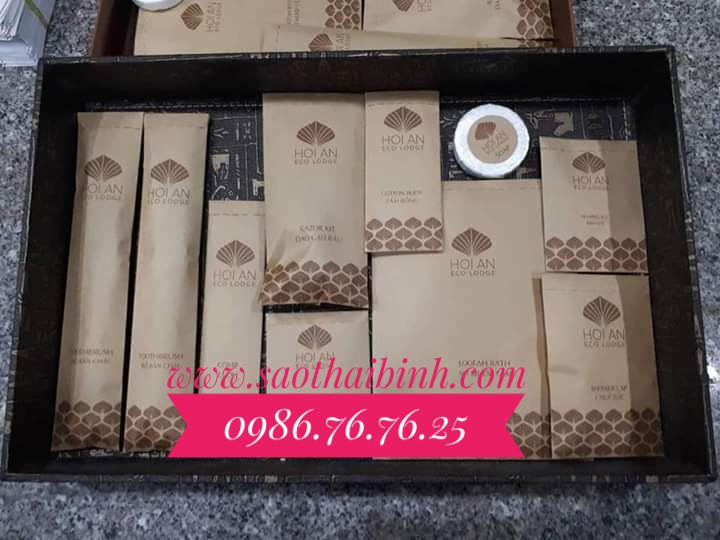 Với khoảng 2000 Khách sạn lớn và nhỏ trên Toàn quốc đang là Tối tác của SAO THÁI BÌNH nên chúng tôi đã từng Thiết kế hàng chục nghìn Bộ mẫu Bao bì đồ dùng tiêu hao Amenities với nhiều kiểu dáng thiết kế sang trọng trên nhiều chất liệu bai bì khác nhau như: Hộp giấy, Túi Nilon, Túi Bạc, giấy Kraft, Túi giấy bảo vệ mội trường...