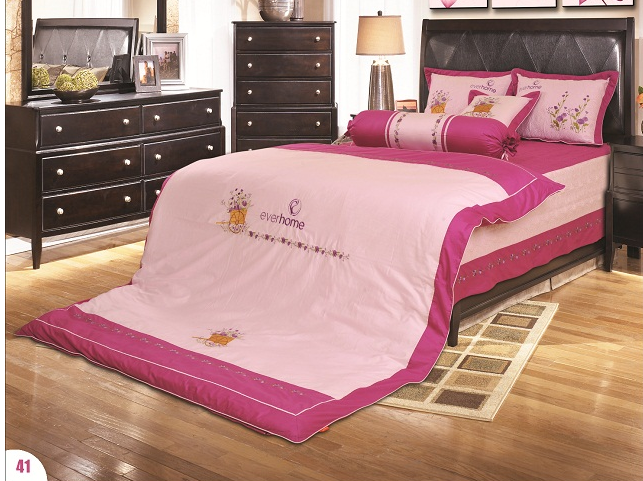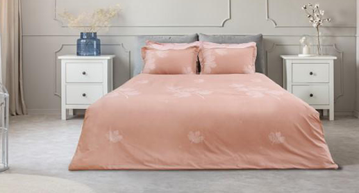 - Đặc điểm: Sự kết hợp giữa tông màu hồng nhẹ nhàng với hoa văn tinh xảo một cách hài hòa mang đến cho bộ chăn ga gối vẻ đẹp sang trọng, tuy đơn giản song lại rất tinh tế.