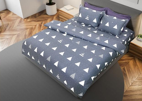 - Đặc điểm: Bộ chăn ga gối với tông màu chủ đạo là màu ghi với họa tiết hình tam giác và những chấm bị nhỏ màu trắng được kết hợp một cách hài hòa. Sản phẩm mang đến một phong cách thật trẻ trung cho phòng ngủ nhà bạn.