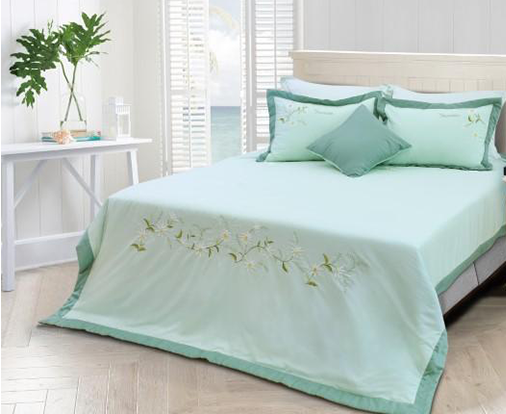 - Đặc điểm: Bộ chăn ga gối thiết kế tông màu xanh sang trọng kết hợp thêu họa tiết tạo điểm nhấn rất đẹp mắt.
