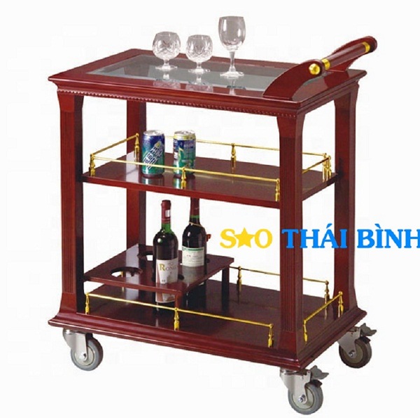 Xe đẩy phục vụ rượu khách sạn là một trong những sản phẩm thiết bị khách sạn cao cấp chuyên dùng cho khách sạn, hội nghị... vật liệu chủ yếu bằng gỗ, kính và inox cao cấp với thiết kế đẹp và sang trọng.
