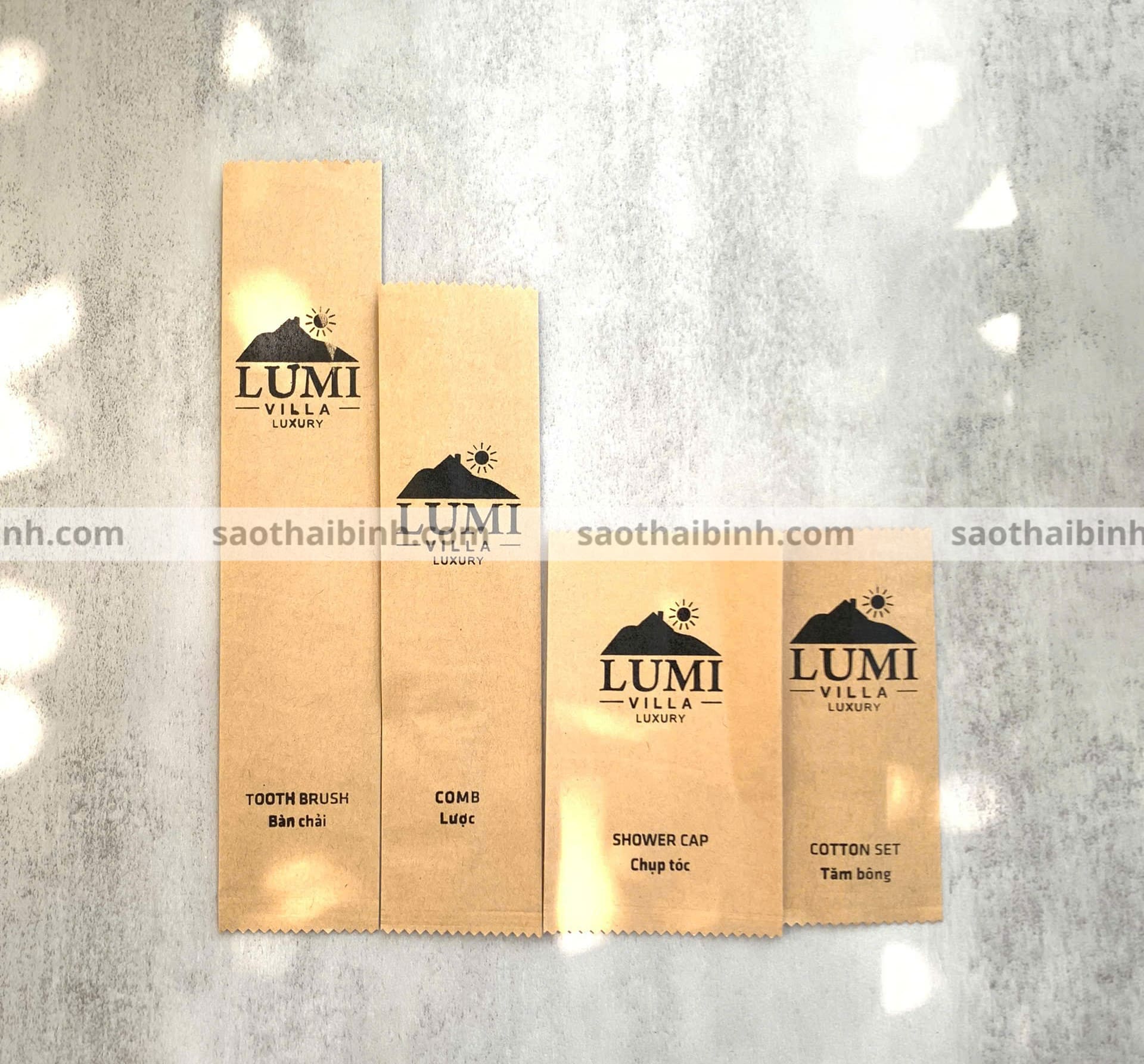 Bộ amenities túi kraft nâu in logo
