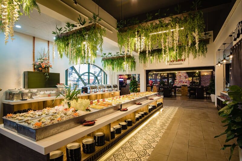 Không gian sử dụng gam màu xanh rêu kết hợp màu trắng và gỗ sang trọng. Mang đến trải nghiệm ấm áp và hiện đại cho du khách.