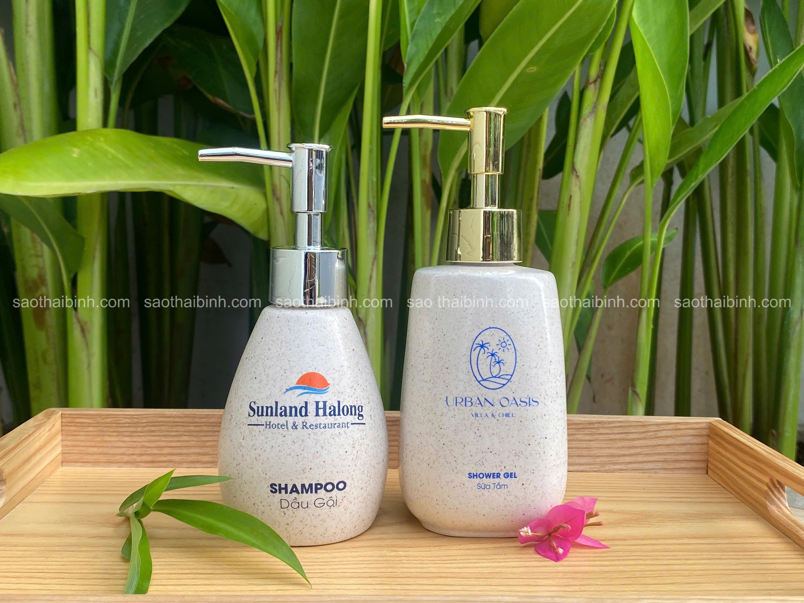 Theo như thống kê thì những năm gần đây có đến 70% khách sạn, resort hay thậm chí là nhà nghỉ bình dân đang sử dụng lọ đựng dầu gội sữa tắm bằng sứ thay vì tuýp 1 lần như trước đây. Đây là lọ bình đựng gốm sứ dung dịch sữa tắm nằm trong bộ đồ dùng amenities thiết yếu của khách sạn bao gồm: