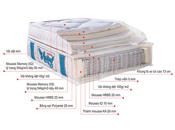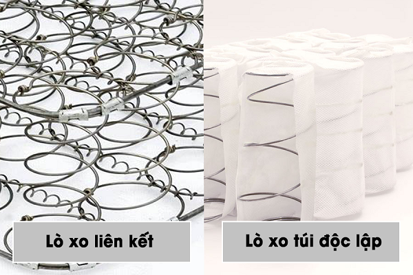 Đệm lò xo túi độc lập: Đây là loại đệm mà mỗi cuộn lò xo được bọc trong một túi vải riêng biệt và sau đó được khâu hoặc dán lại với nhau để tạo thành một khung vững chắc. Nó khắc phục được nhược điểm về tiếng ồn của các loại đệm lò xo thông thường trước đây.