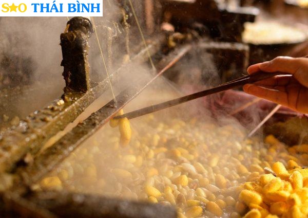 Các sợi tơ sau khi được nấu sẽ được kéo thành sợi trong một chậu nước. Công đoạn này hoàn toàn được làm thủ công và cũng là công đoạn quan trọng nhất trong toàn quá trình sản xuất.