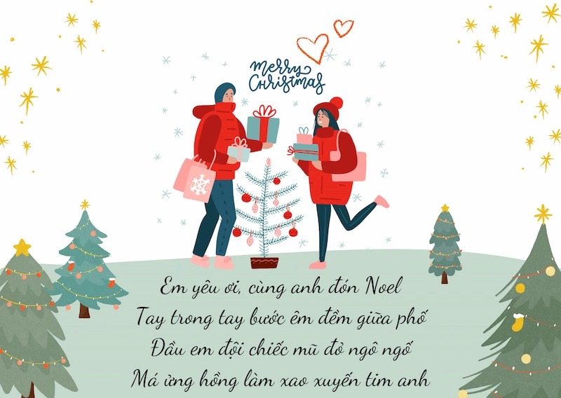 - Em/Anh ơi, anh/em có biết không, sự ấm áp duy nhất giữa trời đông buốt giá này chính là hơi ấm từ bàn tay anh/em. Chúc anh/em một đêm Noel thật yên bình, như một khúc thánh ca dịu dàng chỉ dành riêng cho chúng ta.