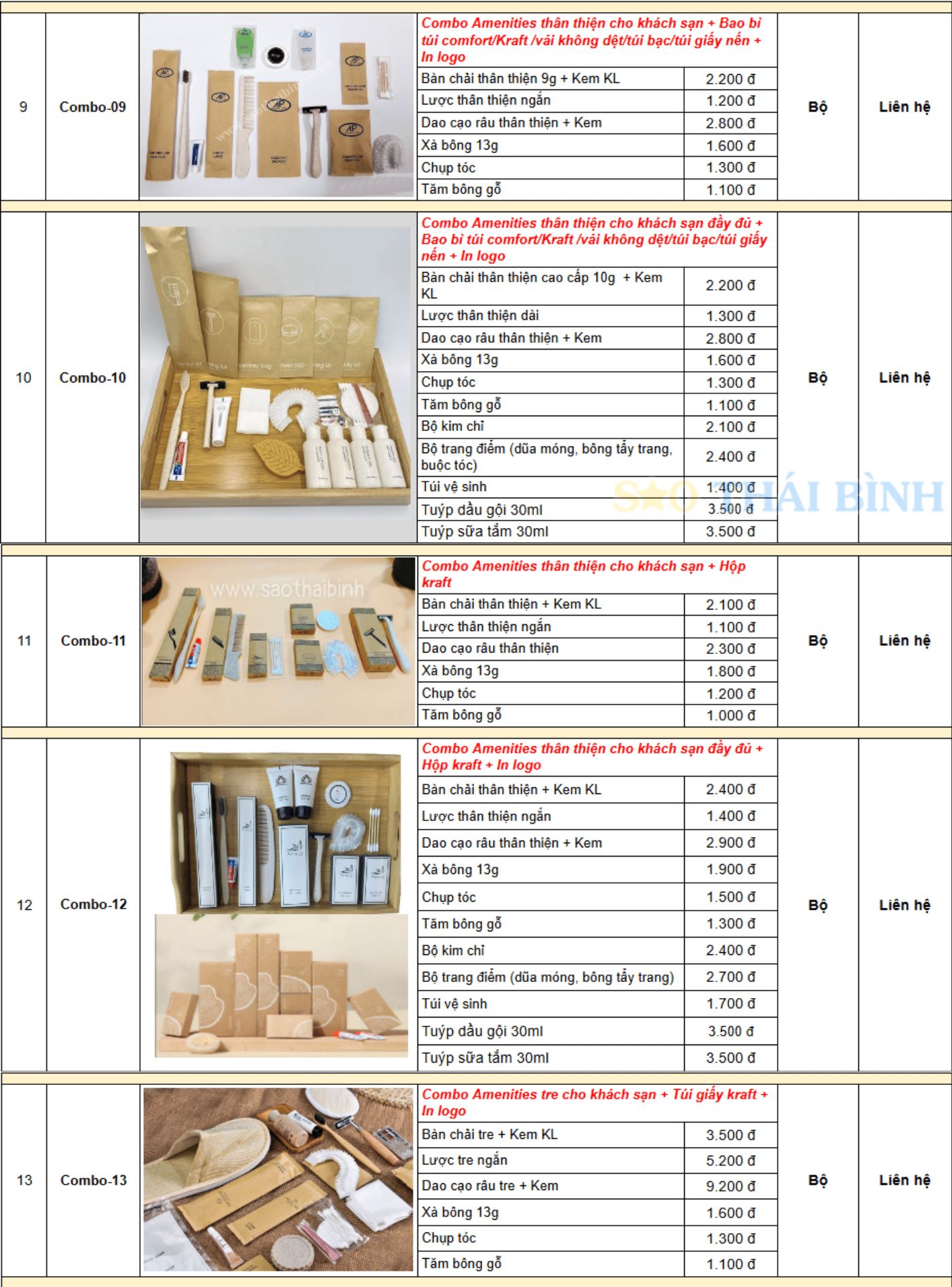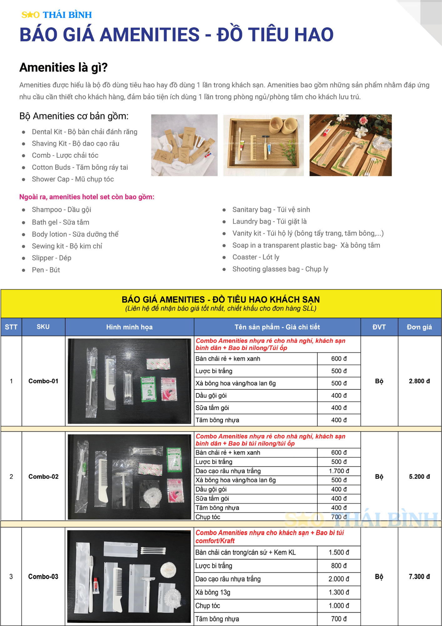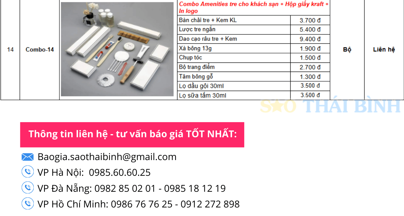 Các sản phẩm tại Sao Thái Bình luôn được cam kết chất lượng, đảm bảo đầy đủ chứng từ và hóa đơn đỏ. Trên đây là bảng báo giá các bộ amenities khách sạn - báo giá đồ dùng tiêu hao các loại. Khách hàng có thể lựa chọn sản phẩm theo yêu cầu để sở hữu combo amenities độc quyền.