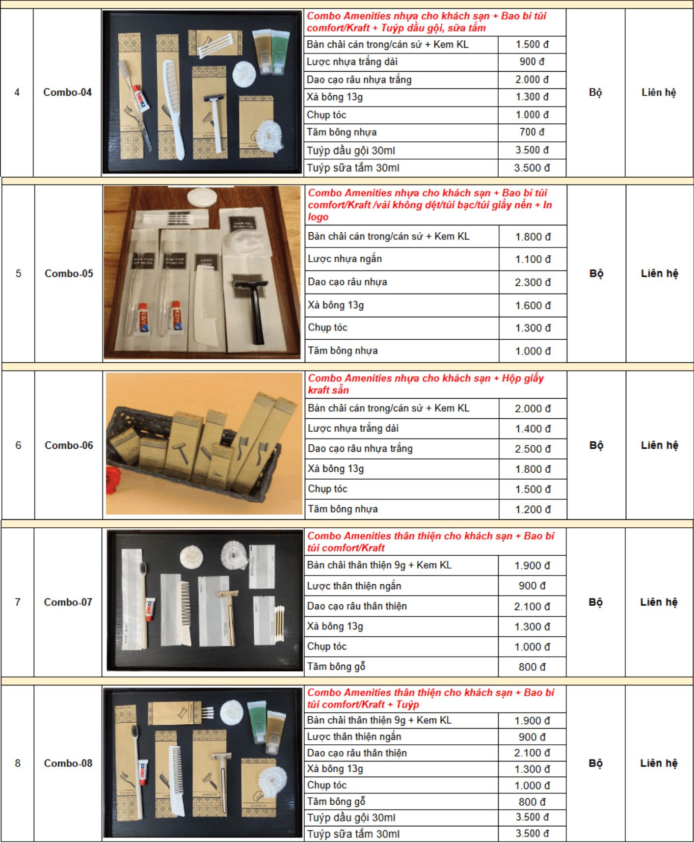 Báo giá đồ dùng khách sạn - Báo giá Amenities cập nhật mới nhất