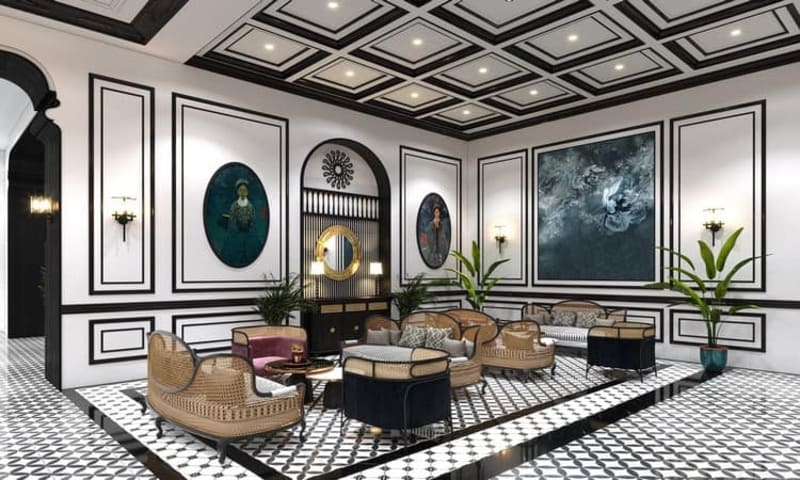 Phong cách Indochine được ứng dụng nhiều trong cách công trình quy mô như khách sạn, biệt thự, villa, resort,... Dưới đây là những đặc điểm buộc phải có nếu bạn đang dự định thiết kế khách sạn hoặc dinh thự theo lối thiết kế này: