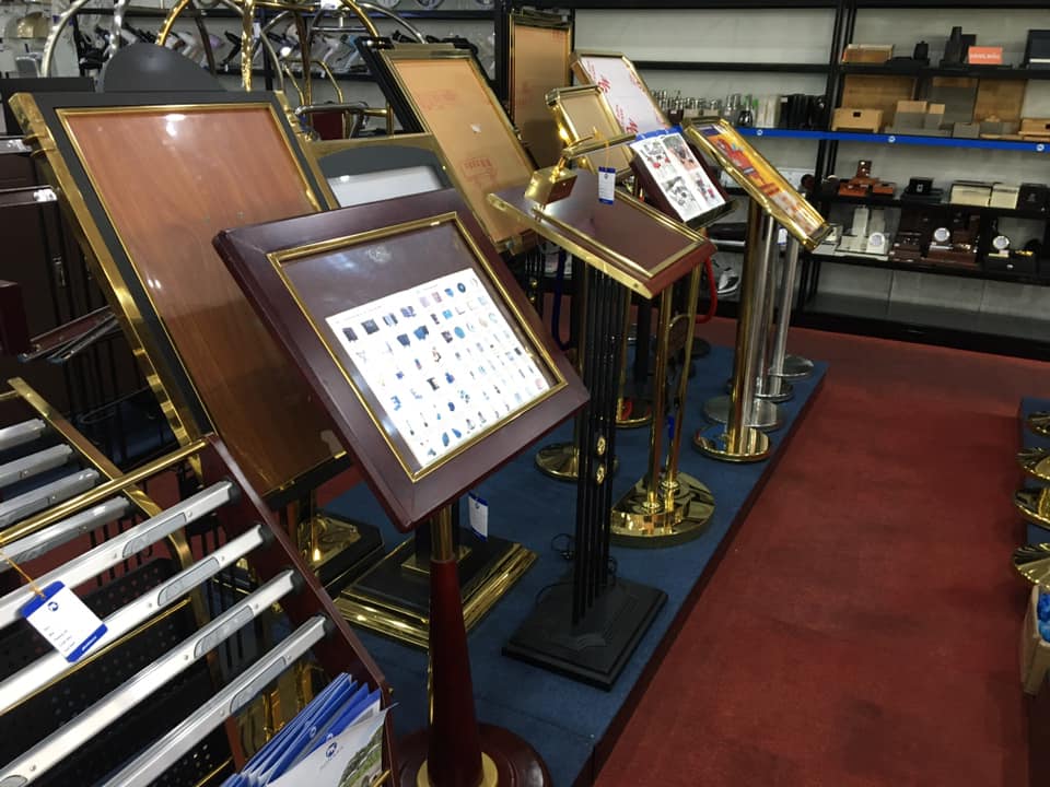 + Vị trí lễ tân: thùng rác, giá đỡ, xe đẩy vali, các giá đỡ,…