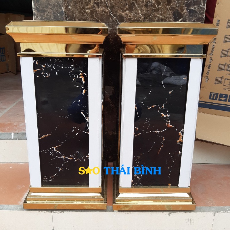 - Chất liệu: Đá hoa cương + Inox mạ vàng