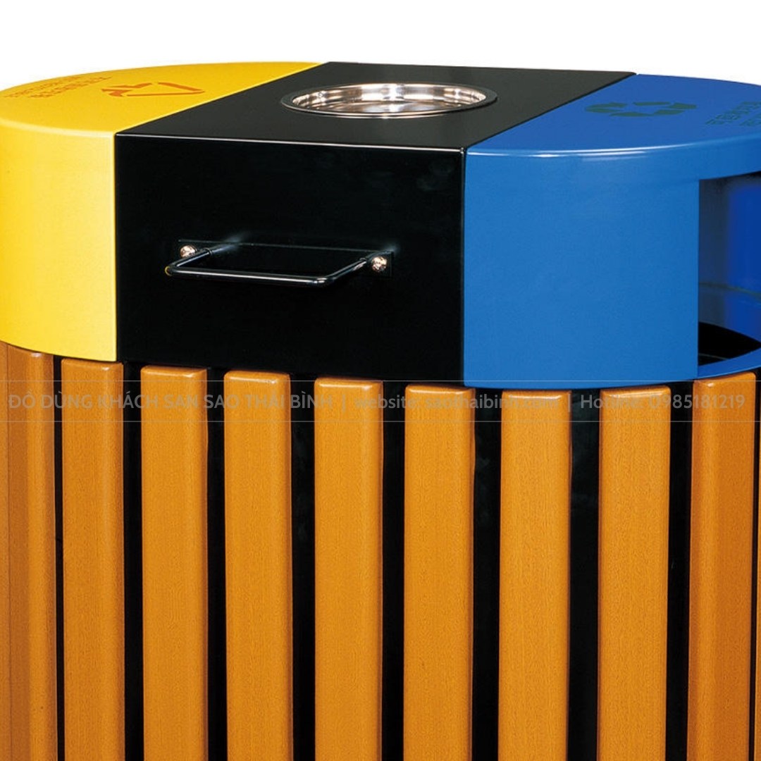 Thùng rác ngoài trời có thiết kế đẹp mắt và chất liệu bền bỉ, chịu được nắng mưa tốt. Thích hợp sử dụng cho nhiều không gian trong nhà và ngoài trời.