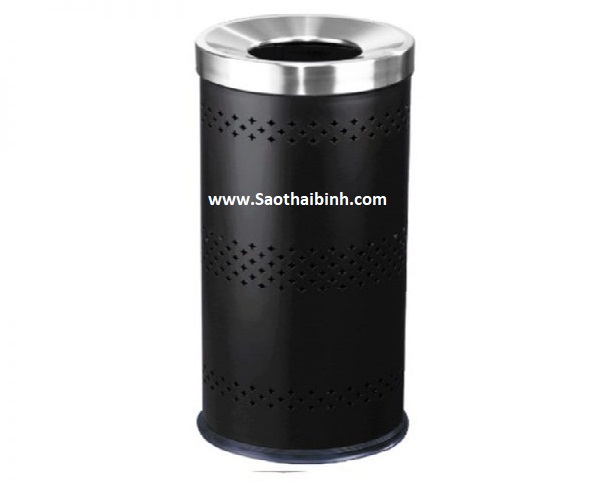 Thùng rác bằng chất liệu thép phun sơn tĩnh điện với vành miệng bằng chất liệu inox 304 không gỉ và chân đế được bọc vành cao su. Cửa bỏ rác được khoét cách điệu phía trên, thuận tiện cho việc xả rác, thân thùng được dập lỗ cách điệu.Thùng rác phù hợp cho những khu vực cấm hút thuốc lá