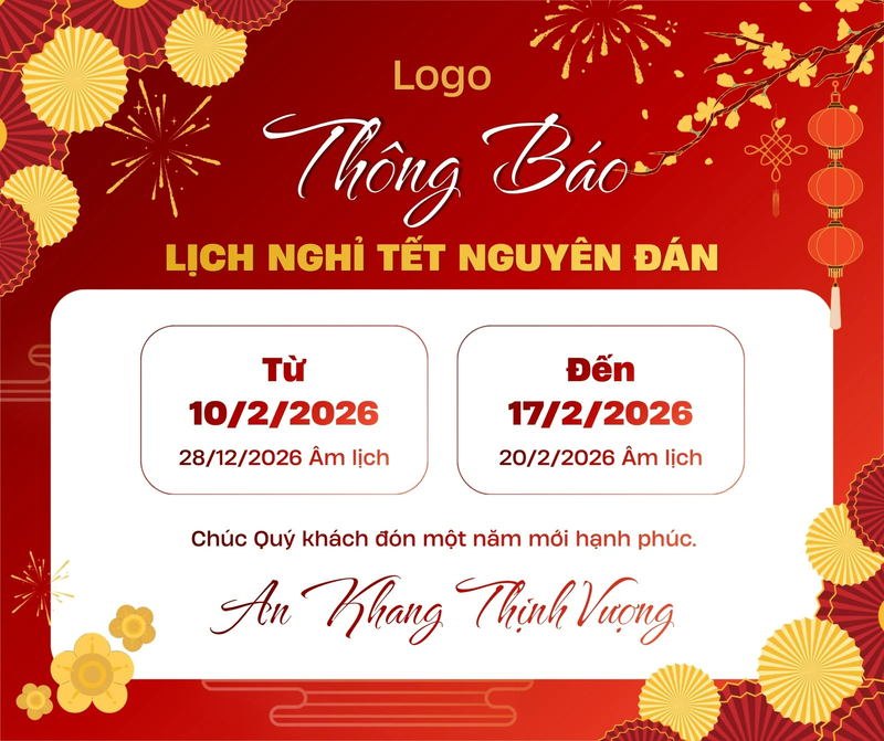 Thông báo lịch nghỉ tết 2026 đơn giản