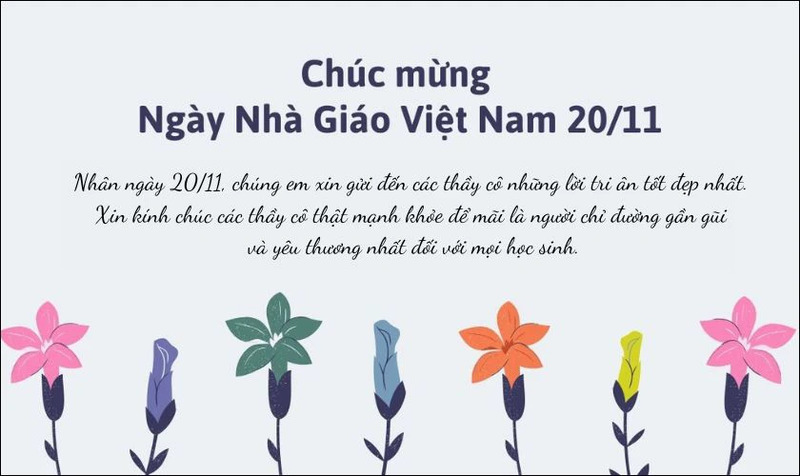 - "Nhân ngày Nhà giáo Việt Nam 20/11, em xin gửi đến thầy/cô lời chúc tốt đẹp nhất. Kính chúc thầy/cô luôn mạnh khỏe, hạnh phúc và thành công trên con đường trồng người."