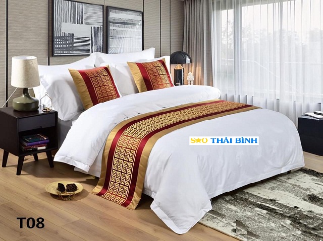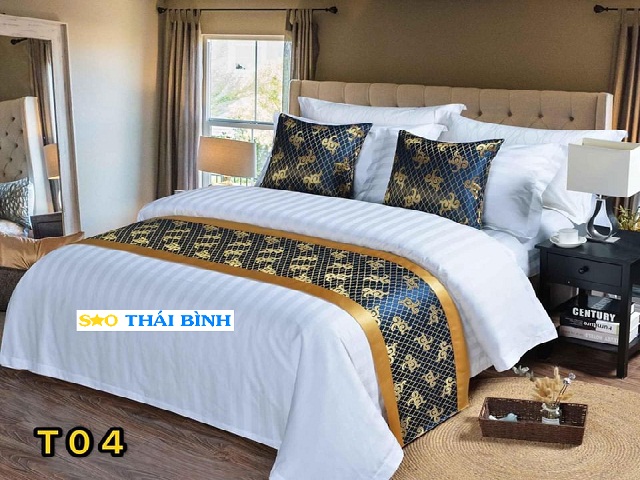Đối với mọi căn phòng khách sạn, bên cạnh nội thất, thiết bị tiện nghi, không gian sạch đẹp, khăn tắm khách sạn chất lượng thì tấm trang trí giường khách sạn cũng được đáng giá là yếu tố tạo điểm nhấn nổi bật cho không gian phòng ngủ khách sạn cùng với những công dụng không ngờ khác. Bạn đang dự định mở một khách sạn hay cần làm mới lại không gian phòng khách sạn và đang cần tìm những mẫu tấm trang trí giường đẹp mắt và hài hòa. Hãy cùng Sao Thái Bình tham khảo các mẫu tấm trang trí giường dưới đây để bạn lựa chon nhé.